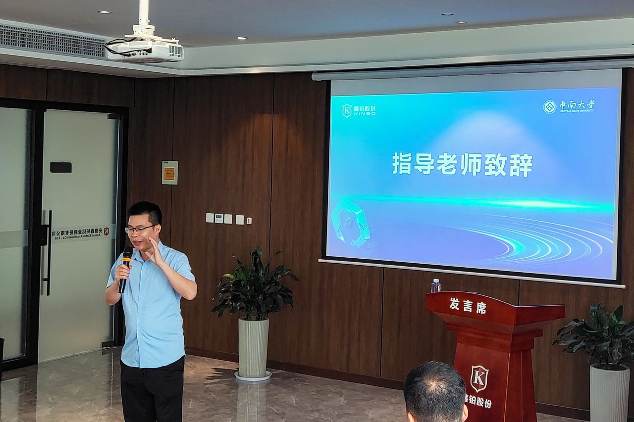 首先由韋總代表公司對(duì)帶隊(duì)老師和同學(xué)們的到來(lái)表示熱烈歡迎。他表示,今年3月,中南大學(xué)和鑫鉑股份的校企合作簽約儀式和研究生聯(lián)合培養(yǎng)基地、材料學(xué)院大學(xué)生工程實(shí)踐教育基地授牌儀式剛剛落幕,轉(zhuǎn)眼7月就迎來(lái)了中南大學(xué)首批大學(xué)生來(lái)公司實(shí)習(xí)。實(shí)習(xí)生的到來(lái),標(biāo)志著鑫鉑股份和中南大學(xué)的合作又進(jìn)入一個(gè)嶄新階段,這是一件可喜可賀的事情。